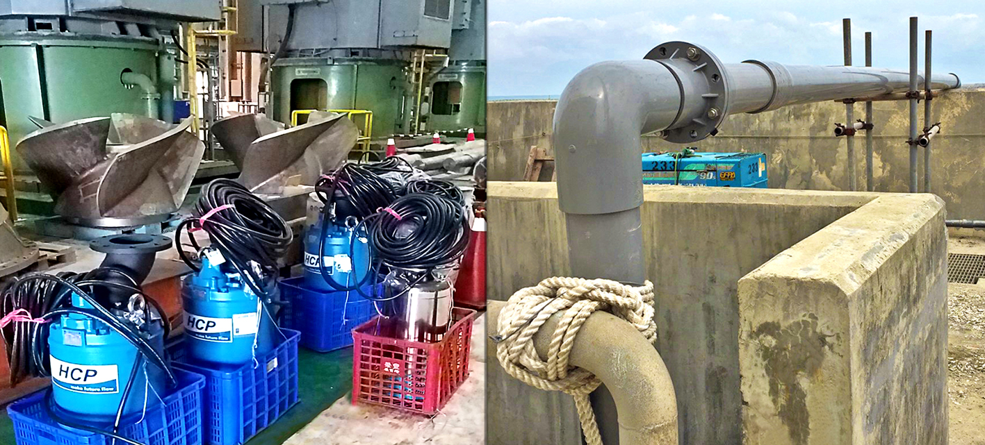 In this case, seawater is introduced into the water treatment tank as cooling water of the power plant. However, marine shellfish will adhere to the tank over periods of time. Especially, the effect of bar screen will be reduced once there are too many adhered substances. To facilitate the cleaning operation in the tank, it is planned to use the pump to clean the water treatment tank every six months.